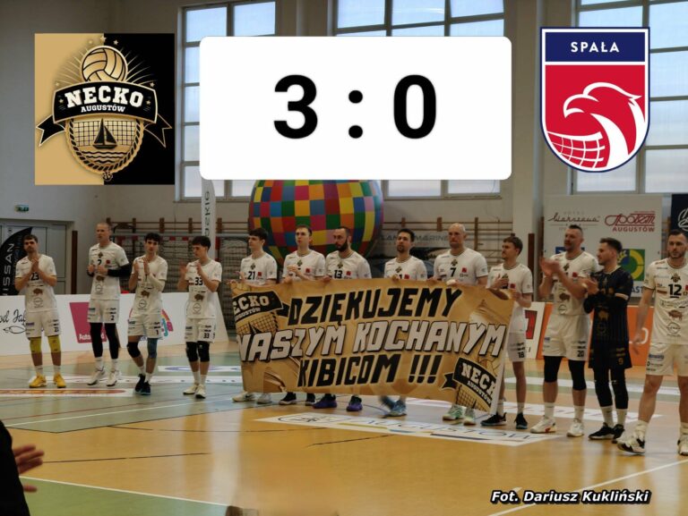 W środowy wieczór w hali przy Konopnickiej nie chodziło już tylko o tabelę.Chodziło o coś więcej. O zakończenie sezonu z godnością.O podziękowanie.O emocje, które zostają na długo. I dokładnie to dostali kibice. Necko – Spała 3:0 Sety: 25:20, 25:22, 25:21 „Dziękujemy naszym kochanym kibicom” Jeszcze przed pierwszym gwizdkiem zawodnicy KS Necko Augustów stanęli razem z Read More