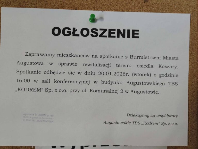 Rewitalizacja Osiedla Koszary nie pojawiła się w Augustowie z dnia na dzień. To nie jest nowy pomysł ani nagłe olśnienie. To proces, który oficjalnie rozpoczął się wiosną 2023 roku i został udokumentowany na miejskiej platformie konsultacyjnej. Zanim więc padną kolejne deklaracje, warto przypomnieć, jak wyglądał początek tej historii. Kwiecień 2023 – start rozmowy z mieszkańcami