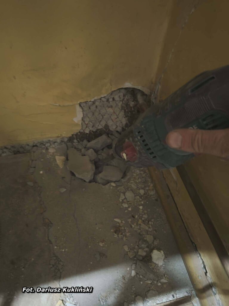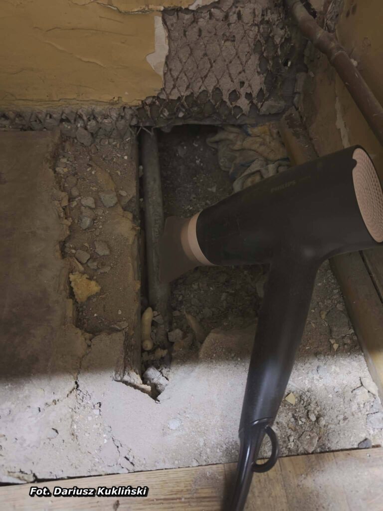 Nie ingerowałem w instalację wodną. Nie doszło do żadnego rozcinania rur, demontażu ani przeróbek. Instalacja nie została naruszona – usunięto jedynie skutek przemarzania poprzez ogrzanie zamarzniętego elementu. Co istotne, do wykonania tych prac nie były potrzebne żadne specjalistyczne narzędzia ani firmy zewnętrzne. Wystarczyła zwykła suszarka do włosów oraz podstawowa młotowiertarka.